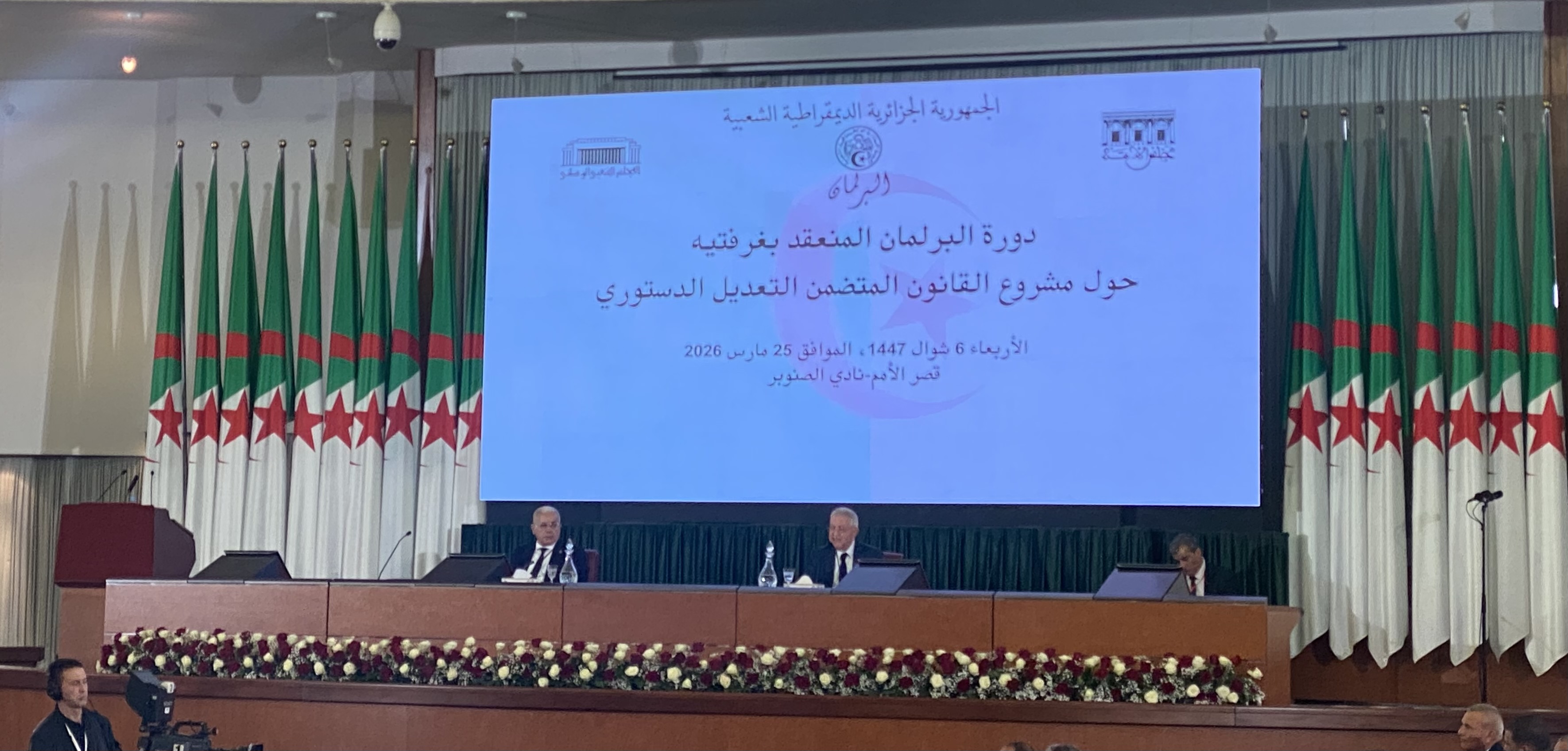 صادق أعضاء البرلمان المجتمع بغرفتيه، مساء اليوم، بقصر الأمم بنادي الصنوبر بالعاصمة، بالإجماع على مشروع القانون المتضمن التعديل التقني للدستور.