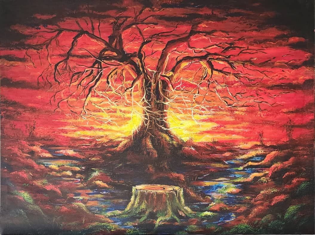 ذلك المفهوم الذى جعله يتجول بين الاتجاهات الفنية المختلفة ، ليخوض مضمار الأعمال التجريدية ليبدع أعمال فنية اعتمد فيها على العفوية المطلقة نبعت من الخيال والأحلام ، تفجرت فيها الألوان في تكوينات تجريدية، لتدور حول بعضها البعض الآخر فى تشكيلات مغلقة كالأزهار قبل التفتح أو منبسطة تتناثر عناصرها كالثمرة التي بلغت قمة نضجها وترجم ذلك فى لوحات كثيرة منها لوحة” زهرة الرمان” التى صور فيها انتشار اللون على سطحها متحررا من أي سياق موضوعي، في حالته السائبة، حتى تجاوز التعبير حدود اللون والسطح. وبرزت الإضاءات مثل ومضات إرتجاجية كمعادل صورى للشعور في مجابهة ظاهرة خارقة، مثل الوقوع فى منطقة بركان، أو وسط موجات بحر عاتية.