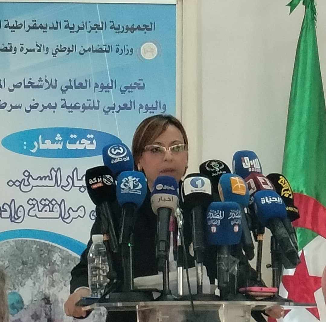 كما استحضار ذات الوزيرة مجهودات الدولة في مكافحة مرض السرطان من خلال القرار السيادي للسيد الرئيس باستحداث اللجنة الوطنية للوقاية من مرض السرطان و مكافحته و من صاحبها من قرارات ملمة بالواقع المجتمعي، لاسيما التكفل الفوري بمرضى السرطان الغير مؤمن عليهم اجتماعياً و الحصول على بطاقة الضمان الاجتماعي بصفة مستعجلة و ميسرة و هو نفس الوعد الذي أسس لاستصدار المرسوم التنفيذي المتعلق بالتكفل الطبي بالمعوزين الغير مؤمنين اجتماعيا على مستوى قطاع التضامن الوطني و الذي يهدف إلى تنظيم الرعاية الطبية المجانية لهاته الفئة لاسيما المصابين بأمراض مزمنة و أولادهم القصر تحت الكفالة.