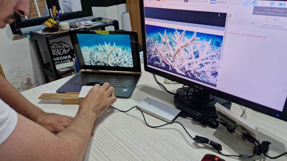 الجانب الثاني التكنولوجي الذي عمل عليه الفريق هو الجهاز أو الأداة التي تسمح بمراقبة و معاينة المرجان في البحر خاصة و أن هذه التقنية صعبة جدا، رغم ذلك ابتكر الطالبان مع فريق العمل وسيلة لمراقبة ذلك المرجان  لمنح الثقة أكثر للزبائن من خلال دليل للاعتناء به داخل البحر، تم تطوير هذا الجهاز وهو أنبوب إلكتروني يحتوي على كاميرا وعدة مؤشرات أخرى منها درجة الحرارة و مستوى ال PH بإمكانه أخذ صورة المرجان، إضافة إلى جانب الذكاء الاصطناعي الذي يرى الصورة و يقارنها مع عدة صور في البيانات ليبين صحة المرجان طبقا للونه.