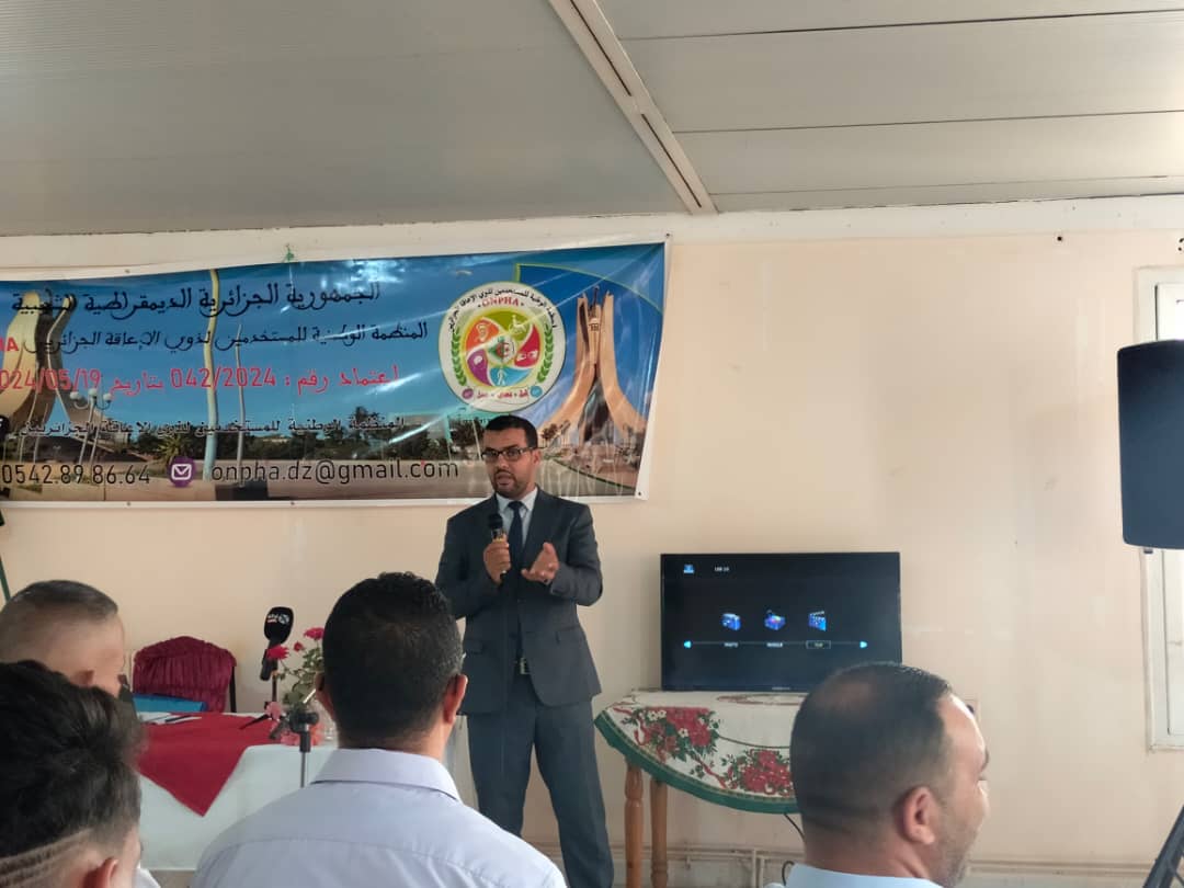 و في الأخير وجه نصيحة لأعضاء المنظمة الوطنية للمستخدمين ذوي الإعاقة الجزاىريين بأن هذا العمل النضالي مطلوب فيه الجهد و الصبر و الكثير من التضحيات، مؤكدا على دعمه اللامشروط للمنظمة.