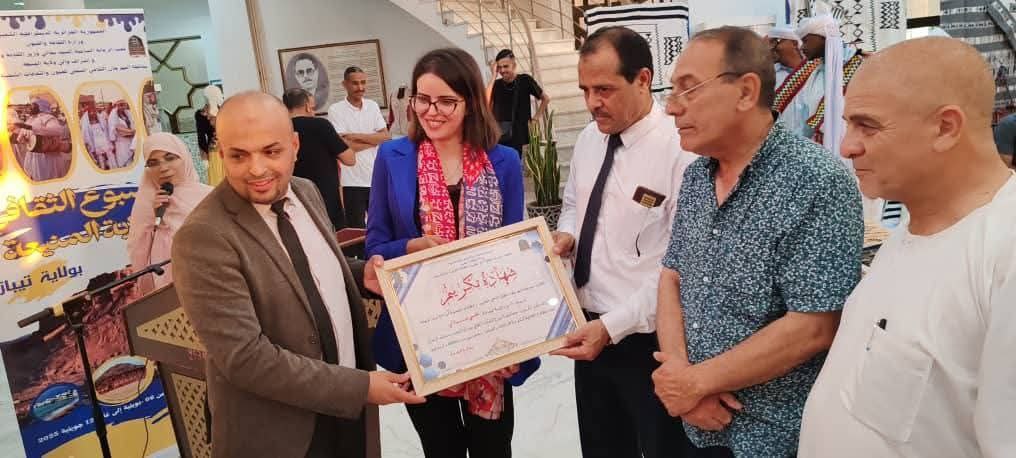 وعرف الحفل تكريمًا مستحقًا من قبل السيد العابد ياسين، محافظ المهرجان الثقافي المحلي للفنون والثقافات الشعبية لولاية المنيعة، لكل من: محافظة المهرجان الثقافي المحلي للفنون والثقافات الشعبية لولاية تيبازة، ووالي ولاية تيبازة، وكذا رئيس بلدية القليعة.