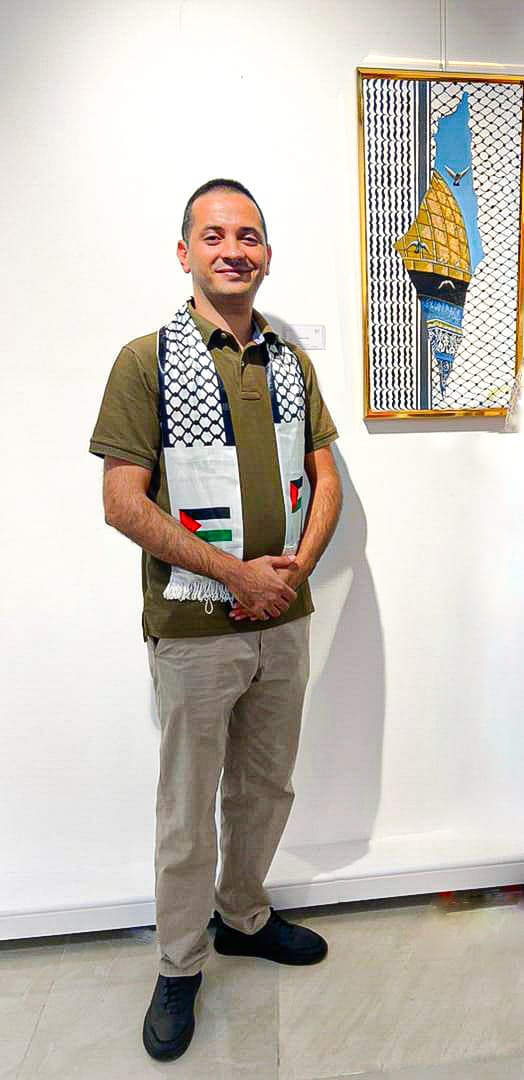 ومن جهة أخرى، خصص الفنان أيضا لوحات تحيي نضال الشعب الفلسطيني وصموده في وجه الوحشية الصهيونية وخصوصا في قطاع غزة، إذ تحمل إحداها خريطة فلسطين ورايتها الوطنية كلفتة تضامن من الفنان تجاه فلسطين، بينما تبرز أعمال أخرى العديد من المعالم والرموز الفلسطينية الشهيرة كقبة الصخرة والكوفية الفلسطينية.
