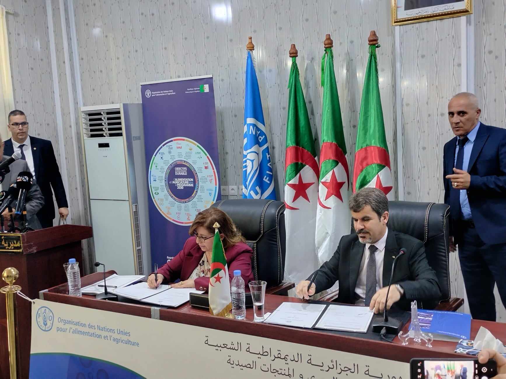 وعلى هامش الإحتفالية تم إمضاء اتفاقية إطار بين وزير الصيد البحري و المنتجات الصينية و وزيرة البيئة و الطاقات المتجددة، كما تم إمضاء اتفاقية مشروع المساعدة الفنية حول دعم إنشاء و إدارة تعاونية الصيد البحري أو تربية المائيات بين الغرفة الجزائرية للصيد البحري و مكتب منظمة الفاو بالجزائر، إضافة إلى تكريم رمزي لبعض النماذج التي تساهم في حماية البيئة البحرية من مهنيين وجمعيات و المساهمين في بناء هذا الفضاء الحيوي.