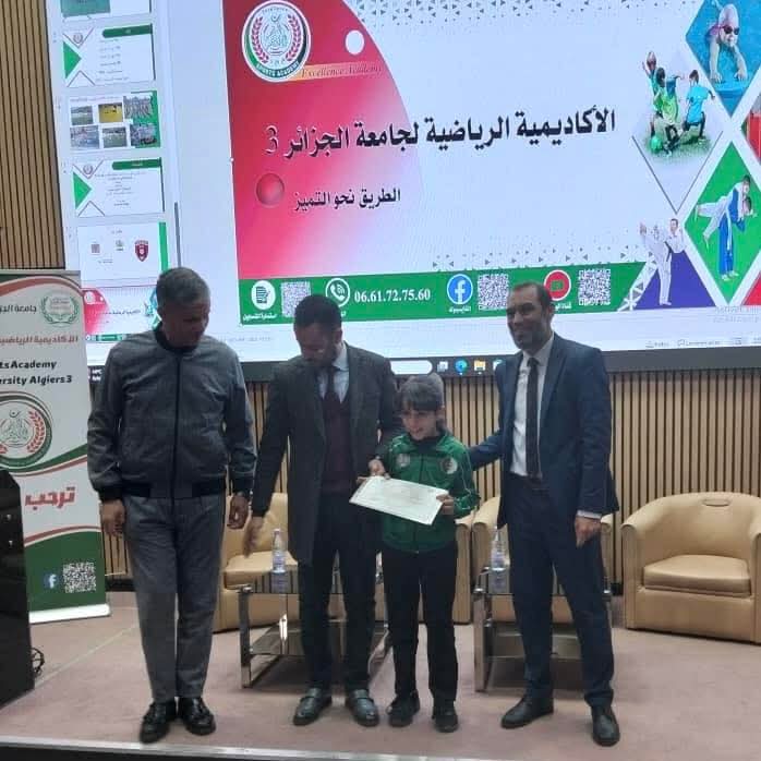 واختتمت المراسم الاحتفالية بتكريم مميز للرياضيين المنخرطين في الأكاديمية من التلاميذ المتفوقين في الطورين الابتدائي والمتوسط، تشجيعًا لهم على مواصلة مسيرة التميز، وترسيخًا لمفهوم التكامل بين النجاح الدراسي والتألق الرياضي، في إطار هذه البيئة الرقمية المبتكرة التي تجسد الرؤية الطموحة لجامعة الجزائر 3 نحو التحول الرقمي الشامل في المجال الرياضي