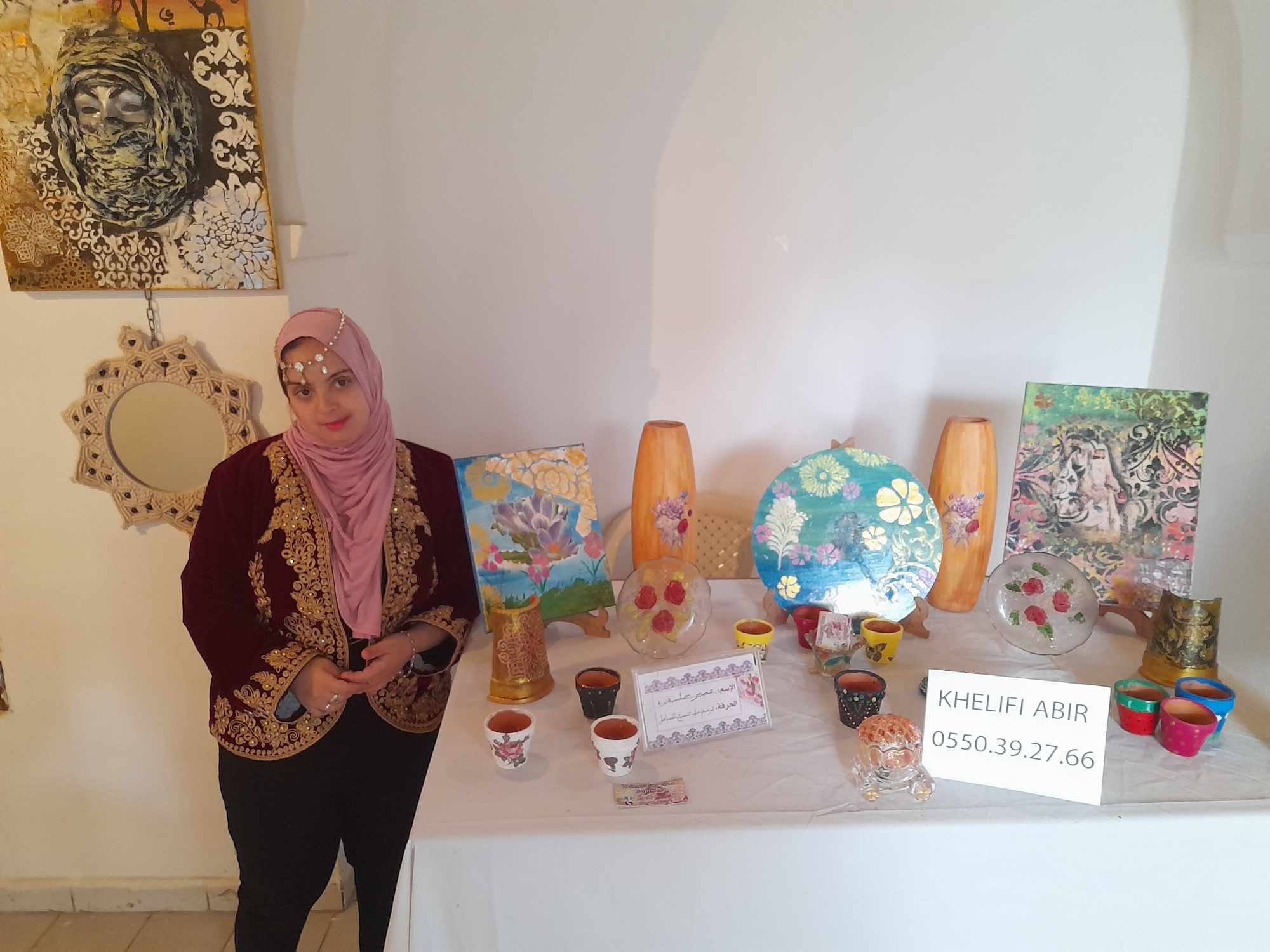 وفي كلمة لها بالمناسبة تشير الحرفية الصغيرة عبير خليفي مختصة في الرسم على جميع المحامل و اللوحات للطابع الزخرفي الفني المصور في لوحاتها الفنية التي تعكس شغفها و ميولها للفن الحي في قالبه التقليدي الذي يحاكي الاصالة و يصور فخامة الثقافة الجزائرية.