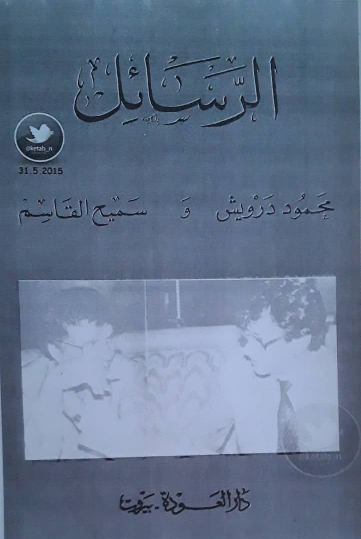 وعندما غادر درويش فلسطين عام 1970ى م . عتب القاسم، عتاب الأخ والصديق المحب، فأرسل محمود هذه الرسالة ليفتتح بها نهراً من الرسائل الحمالة لأشهى الكلام وأعمق المعاني، يقول : " ما معنى أن يتبادل شاعران الرسائل ؟ لقد اتفقنا على هذه الفكرة المغرية منذ اسبوعين في " استوكهولم " الباردة، وها أنذا اعترف بتقصيري لأنني محروم من متعة التخطيط لمدة سبعة أيام قادمة، فأنا مخطوف دائماً إلى لا مكان أخر .. الآن أشمّر عن عواطفي وأبدأ، لا أعرف من أين أبدأ عملية النظر إلى مرآتنا المشتركة ولكنني سأبدأ لأنضبط ، ولأورطك في انضباط صارم .." .