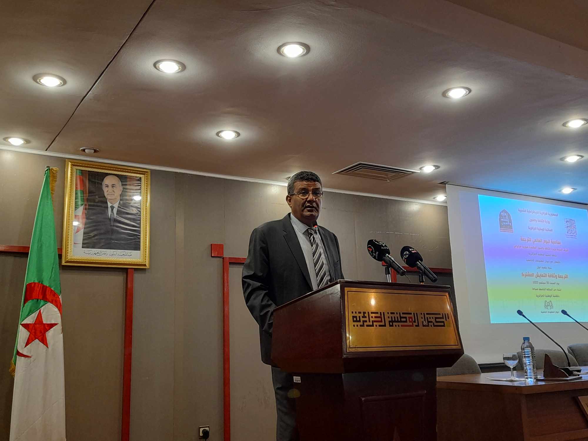 بمناسبة اليوم العالمي للترجمة نظمت المكتبة الوطنية الجزائرية صبيحة اليوم السبت بمقرها ندوة علمية حول " الترجمة و ثقافة التعايش المشترك " تحت إشراف وزيرة الثقافة والفنون صورية مولوجي و بالتعاون مع ديوان المطبوعات الجامعية .و بحضور قامات فكرية و اطارات رسمية.