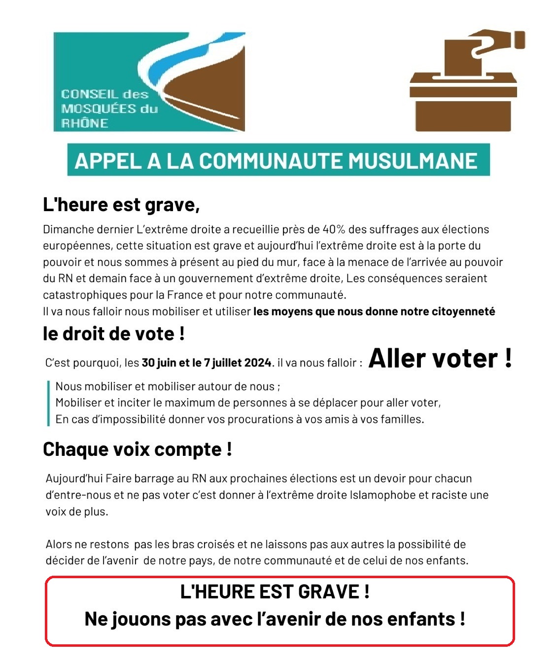 في مواجهة خطر اليمين المتطرف بالنسبة للمسلمين في أوروبا و فرنسا...دعوة للتعبئة على أوسع نطاق: “اذهبوا إلى صناديق الاقتراع، فالأمر جد و ليس هزل "