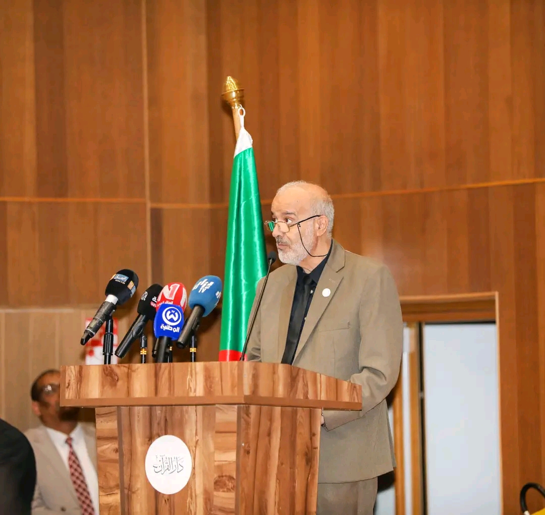 وأكد في كلمته أن هذه الاحتفالية تمثل ختام فترة تكوينية مليئة بالجهد والاجتهاد والتضحية، تمخضت بفضل الله – عز وجل – ثم بتعاون جميع الأطراف، عن نتائج مشرفة وثمار علمية ونفسية وروحية نرجو أن تتواصل في قادم الأيام، وأن تسهم في بناء أجيال من العلماء والباحثين القادرين على حمل رسالة القرآن والعلم في مجتمعنا.