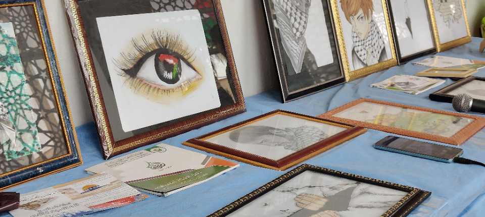 هذه الفعالية تتضمن معرضاً تحسيسياً تمثّل في لوحـات فنية تعبيرية مرسومة ولوازم نسيجية مطروزة عليها كل ما يمثّل أرض الرباط هناك، على غرار الراية والكوفية واللباس النابلسي والغزّاوي وقبة الصخرة والأقصى وخريطة فلسطين وأبو عبيدة وأحمد ياسين والحجارة وصور الابادة وطوفان الأقصى والسينوار.