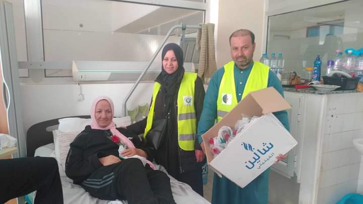 دأبت جمعية درة الفلاح العزم على مواصلة العمل الخيري توجهت إلى المستشفيات مثل مستشفى الحروق الجديد بزرالدة و مستشفى ذوي الاحتياجات الخاصة باسطاوالي، لاسيما مستشفى الشاطئ الأزرق و آخر خاص بالسرطانات، لتقديم الهدايا لمرضى المستشفيات، كانت وجهتها الأخيرة زيارة عائلة فلسطينية لاجئة بمخيم الشباب بسيدي فرج.