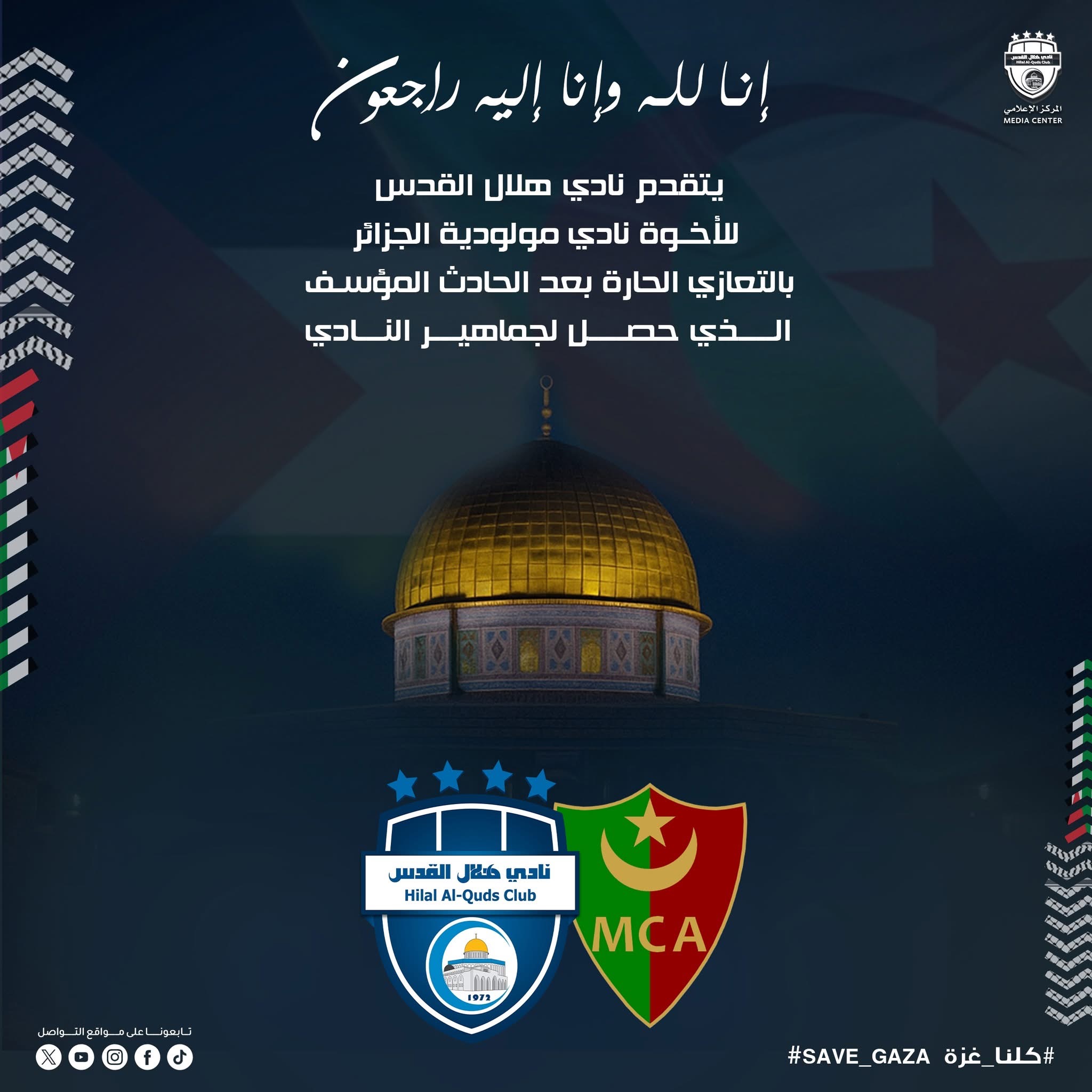 هلال القدس يعزي مولودية الجزائر في ضحايا الحادث الأليم