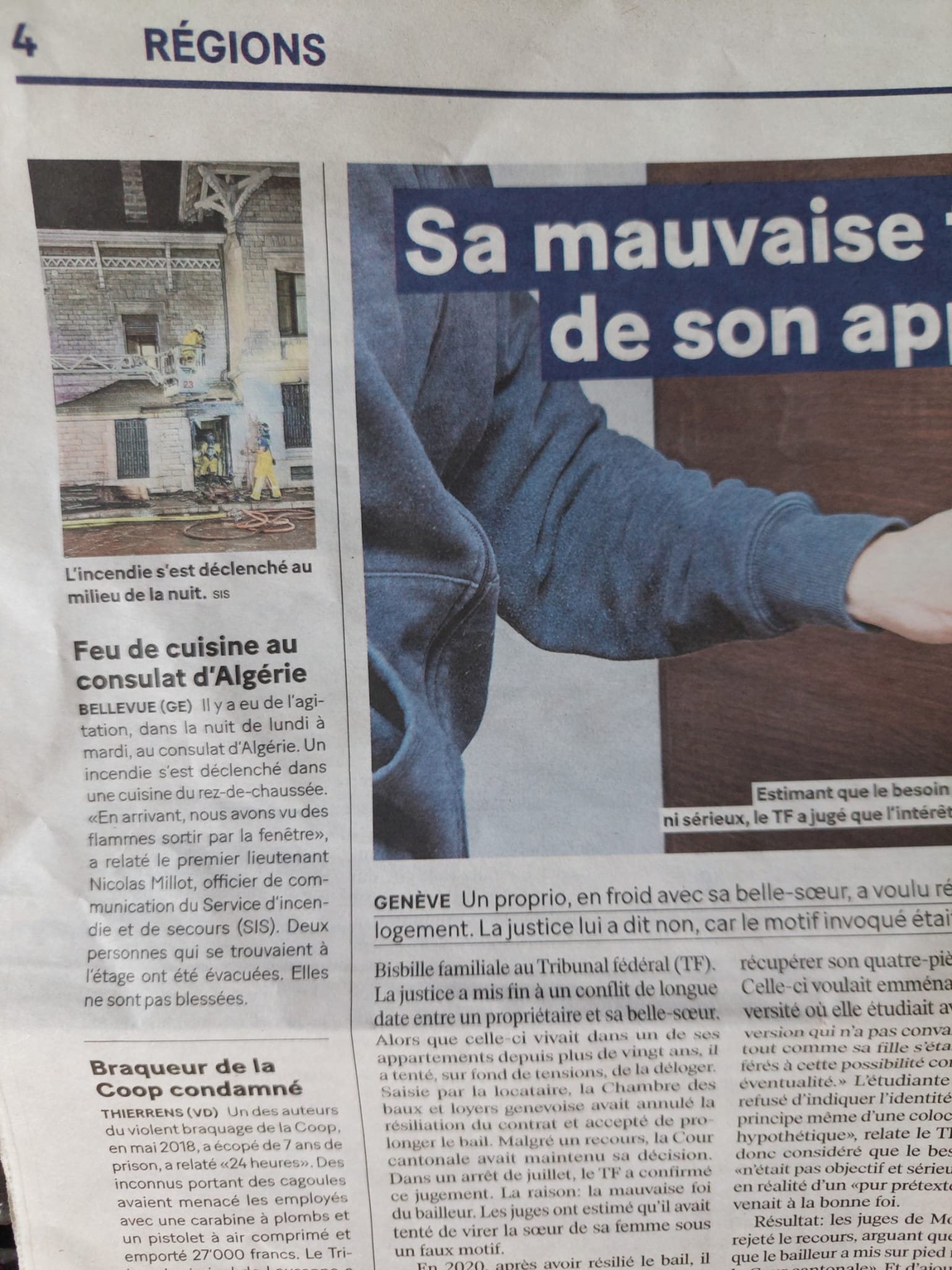 ولكي أشرح أكثر للقارئ الكريم، وأنا أعرف المكان جيدا، كتبت حينها ما ترجمة نصه، التالي، تحت عنوان " حريق مهول في مقر القنصلية العامة الجزائرية بسويسرا"، موضحا، بقولي :
