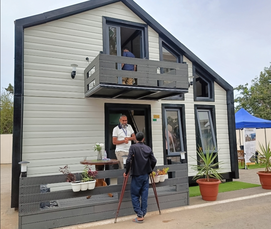 وكشف ذات المتحدث أن البيت المعروض في صالون الجزائر الدولي يمكن تثبيته على الأرض لمدة يومين، في حين تعد المادة المصنع لهذه الشاليهات ملائمة مع التقلبات الجوية، موضحا أن المؤسسة تحتاج إلى مقر كبير يمكنها من إنجاز مخططاتها.