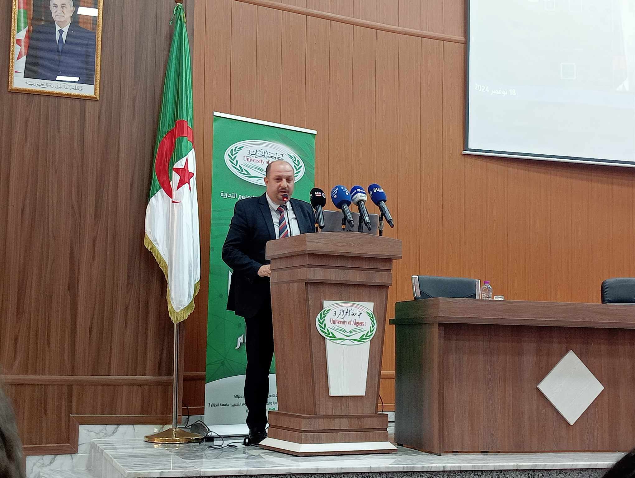 و بالمناسبة، أكد خالد رواسكي مدير جامعة الجزائر 3 في كلمة ألقاها قائلاً أن هذا الملتقى يعتبر نوعي يعكس المكانة التي وصلت إليها جامعة الجزائر 3، و يعالج الإشكاليات الآنية و الحديثة مثل الإدارة الجبائية في ظل التحولات الرقمية و هو واقع في ظل التوجهات الكبرى للدولة الجزائرية في إطار الرقمنة.