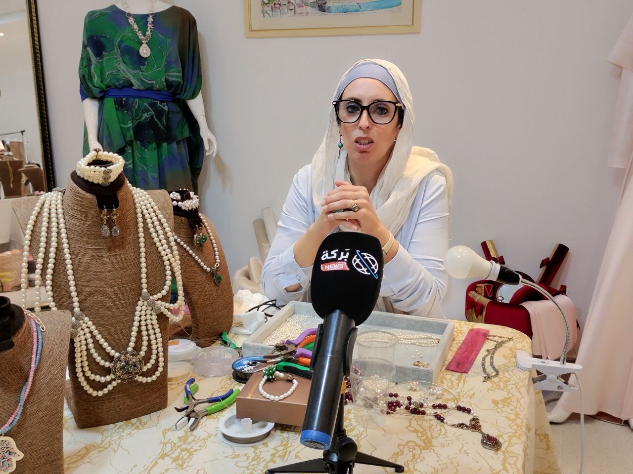 استقبلت بركة نيوز السيدة خديجة محمصاجي حرفية في مجال الحلي بالأصداف اشتغلت كحرفية منذ 12 سنةو مسيرة مركز الفنون الكنوز المتموقع بأولاد فايت الجزائر العاصمة الذي انطلق في 8 مارس 2021، و يظم أرقة متعددة، رواق خاص بصنع الأكسسوارات و المجوهرات و الرسم، و رواق مختص في الملابس التقليدية المعاصرة و رواق يجمع بين القعدة الجزائرية العتيقة و الأطباق التقليدية و رواق آخر للخياطة و الطرز بأنامل ذهبية مبهرة و غيرها من الأرقة .