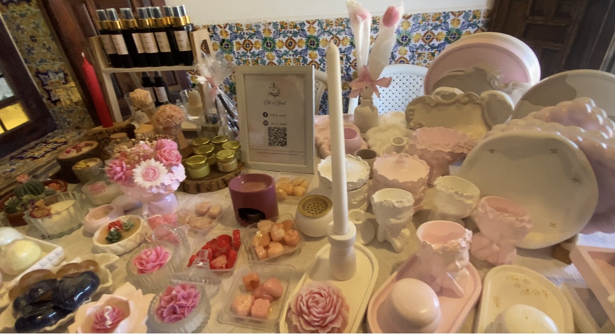 وتبرز تجربة هيام شايب كإحدى الزوايا الأكثر جاذبية في المعرض، التي بدأت مشروعها من هواية صغيرة في صناعة الشموع العطرية.