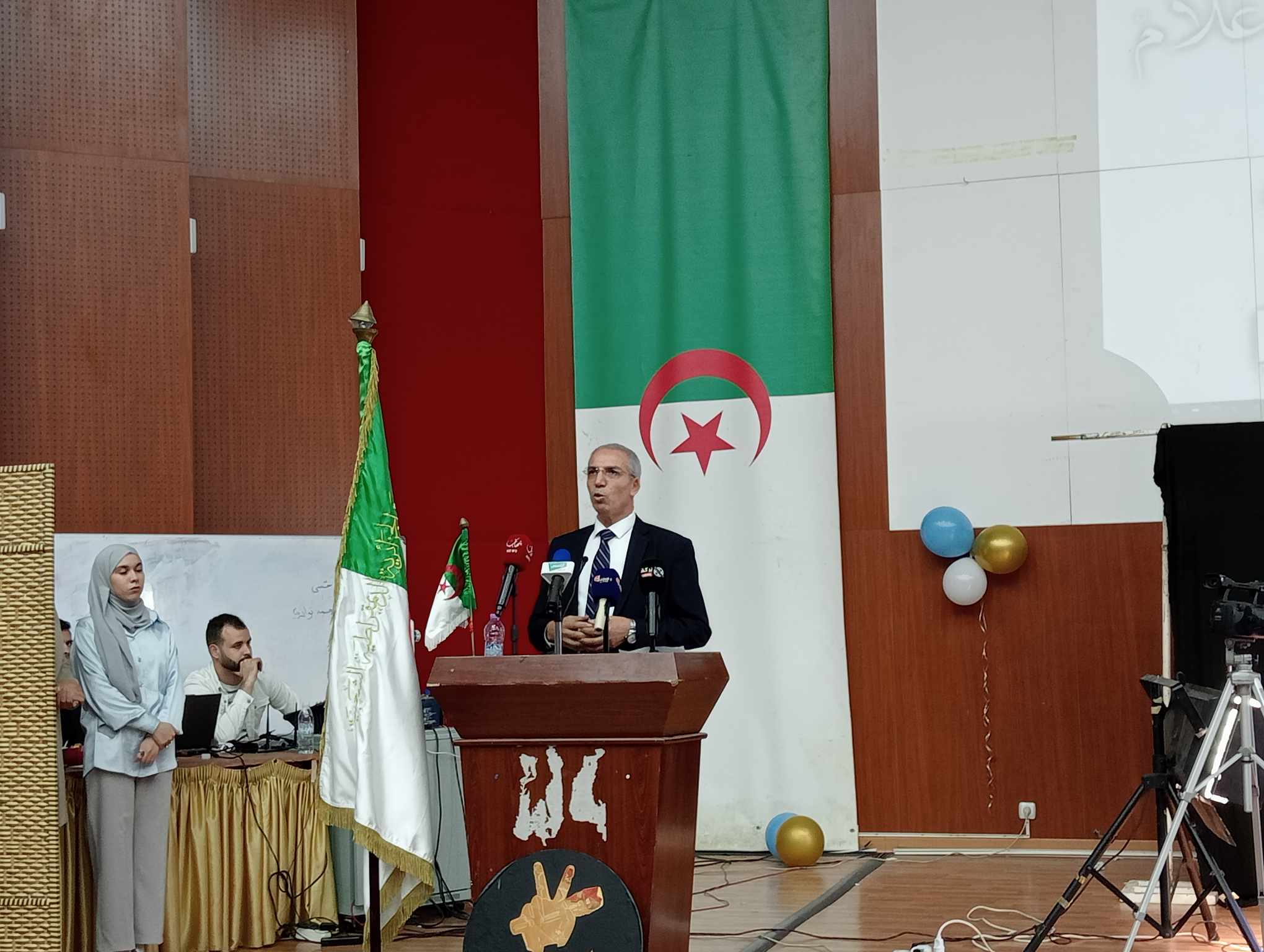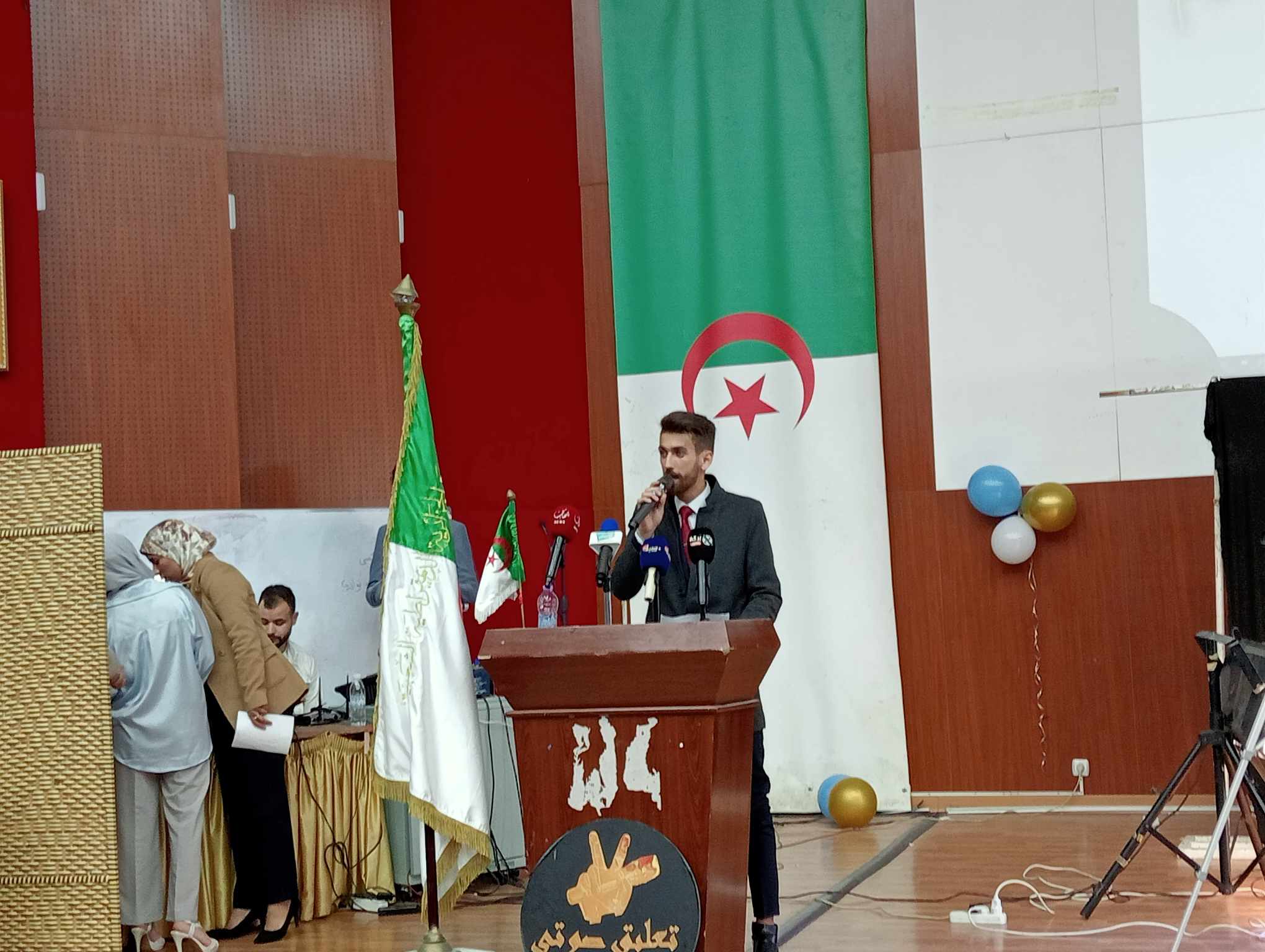 احتضنت اليوم الإثنين، قاعة المحاضرات الكبرى بجامعة أبو القاسم سعد الله، حفل افتتاح نادي نجوم الإعلام، ذلك تحت شعار "ابتكارات صوتاً و صورة"، ذلك بهدف التعريف بالنادي و أهدافه و تشجيع الطلبة للانخراط فيه و إبراز مواهبهم في مجال الإعلام و التنشيط الإذاعي و التلفزيوني.