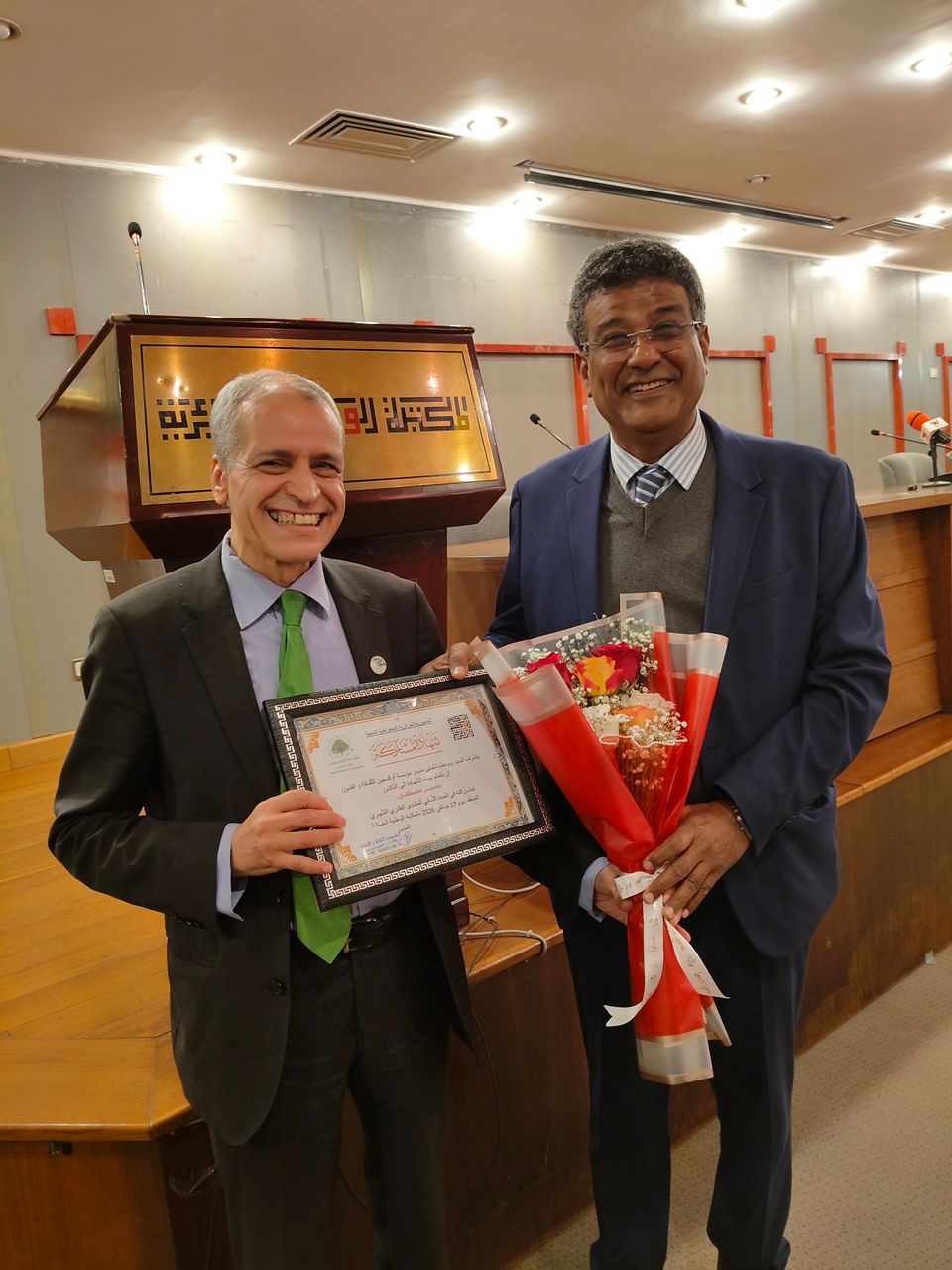 واختتمت فعاليات المنتدى بتكريم الدكتور بشير مصيطفى، خبير الاقتصاد والاستشراف ورئيس المؤسسة الجزائرية لصناعة الغد، تقديرًا لمساهماته الفكرية وجهوده في نشر ثقافة الاستشراف والوعي بالمستقبل، وذلك من قبل الدكتور بهادي منير، مدير المكتبة الوطنية الجزائرية، في لحظة جسّدت الاعتراف بأهمية الفكر الثقافي والاقتصادي في رسم مستقبل الجزائر وتعزيز مكانتها الحضارية.