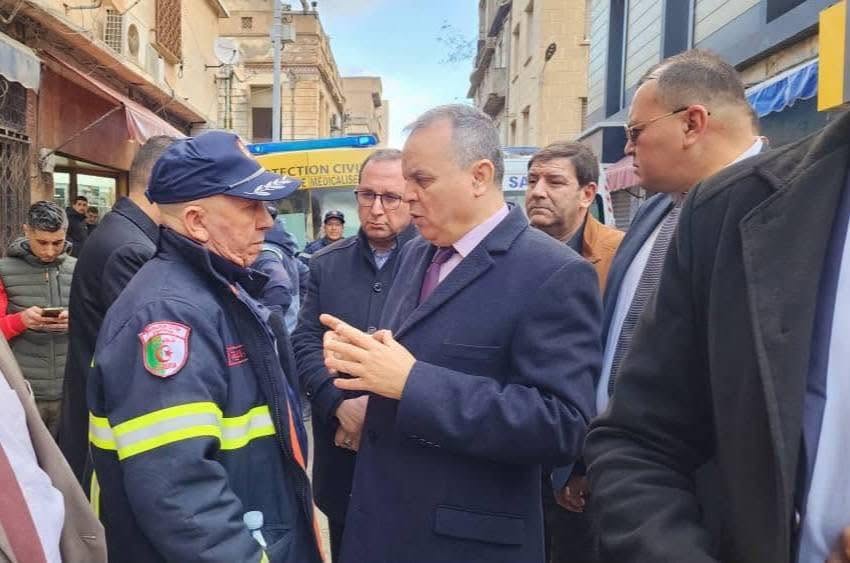 والي وهران يتفقد موقع انهيار جزئي بعمارة سكنية ويشرف على عمليات الإنقاذ شخصياً