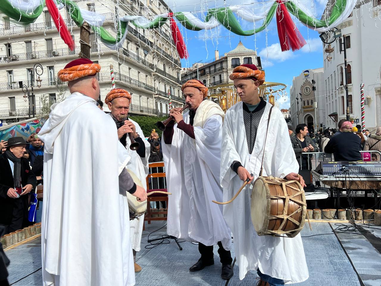 وفي هذا السياق، عاشت ساحة البريد المركزي أجواء احتفالية مميزة، عكست أصالة الذاكرة الوطنية وثراء الموروث الثقافي الجزائري، حيث احتضنت الساحة احتفالات رأس السنة الأمازيغية في مشهد جمع بين الماضي والحاضر، وأكد على مكانة يناير كرمز للوحدة الثقافية الجامعة. وشهدت الفعاليات حضورًا واسعًا من مختلف فئات المجتمع والجمعيات الثقافية، التي توافدت للمشاركة في هذه المناسبة واستحضار قيمها الرمزية.