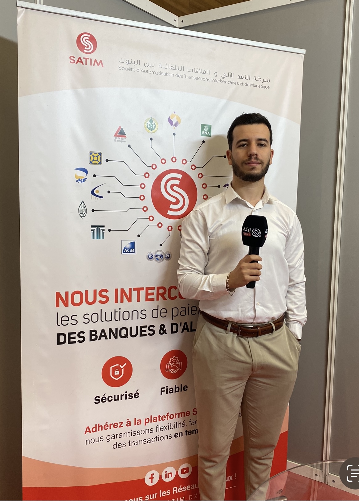 من جانبه، أوضح ممثل شركة النقد الآلي والعلاقات التلقائية بين البنوك، شكلاط أنيس، أن الهدف من التواجد في الصالون يتمثل في التعريف بخدمات الشركة أمام الزوار من مؤسسات وأفراد، لاسيما المهتمين بأنظمة الدفع الإلكتروني الحديثة.