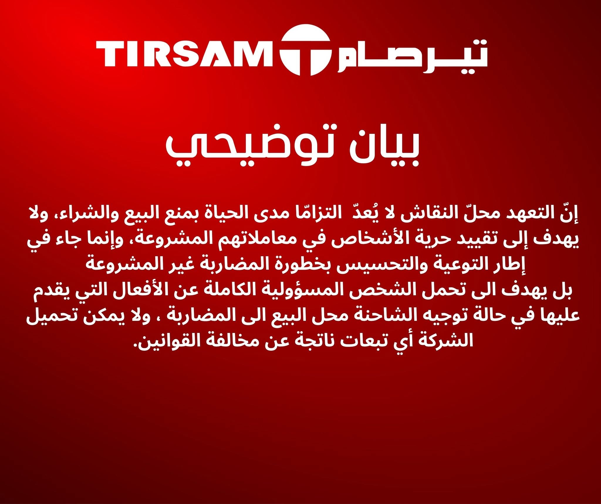 شركة "تيرصام" توضح: تعهد منع المضاربة غير المشروعة ليس تقييداً للحريات بل تحميل للمسؤولية