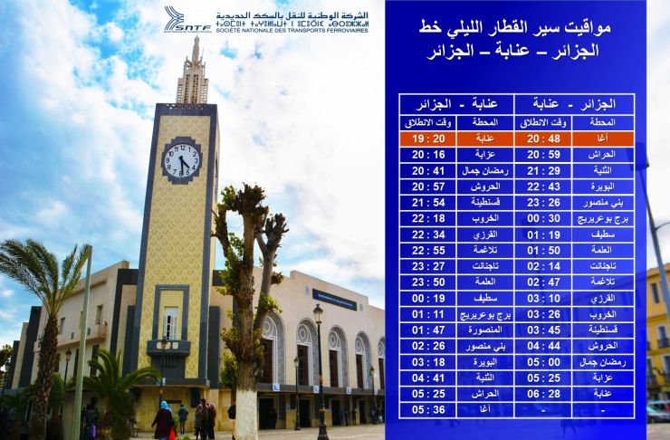 توقيت القطار الليلي على خط "الجزائر – عنابة – الجزائر"